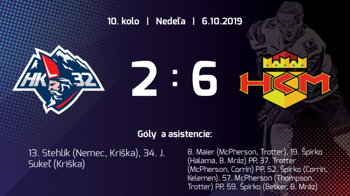 Góly: 13. Stehlík (Nemec, Kriška), 34. J. Sukeľ (Kriška) - 8. Maier (McPherson, Trotter), 19. Špirko (Halama, B. Mráz) PP, 37. Trotter (McPherson, Corrin) PP, 52. Špirko (Corrin, Kelemen), 57. McPherson (Thompson, Trotter) PP, 59. Špirko (Betker, B. Mráz)