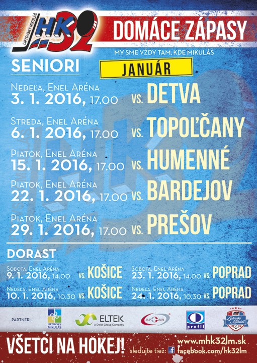 Naši chlapci vyhrali v poslednom zápase v roku 2015 na ľade Nových Zámkov a zakončili tak starý rok výhrou. Veríme, že víťazstvom začnú aj ten nový. Stará múdrosť predsa hovorí. Ako na nový rok, tak po celý rok! Preto ťa potrebujeme dnes na zimáku! Pomôž chlapcom svojou prítomnosťou na zimnom štadióne k víťazstvu. Sme predsa jeden tím!
