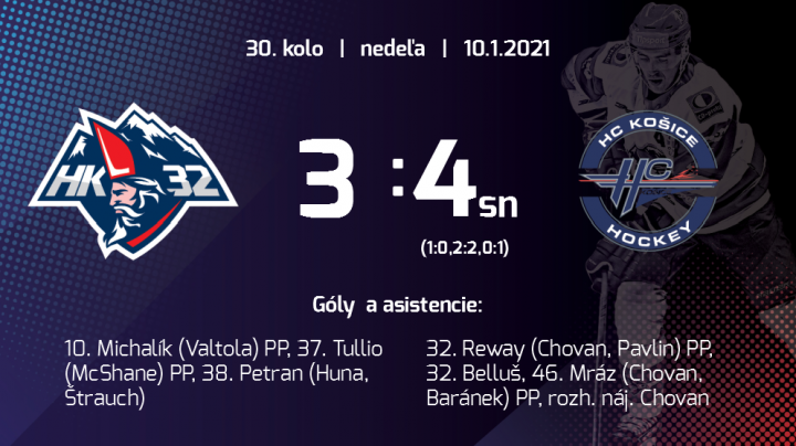 Vyrovnaný zápas rozhodli až samostatné nájazdy. V rovnovážnom stave mohli diváci vidieť vyrovnaný zápas so šancami na oboch stranách. Hra mala tempo a nás môže mrzieť hlavne prvá tretina, kde sme okrem gólu mali ďalšie veľké šance a do šatní sme mohli ísť s vyšším, ako jednogólovým náskokom. V ďalších zápasoch sa musíme taktiež vyvarovať zbytočným vylúčeniam.