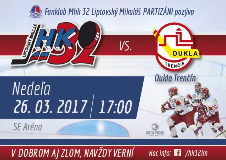 Najbližšie sa predstavia naši hráči na domácom ľade. V nedeľu 26.3. privítame v „Kôlničke“ trenčiansku Duklu. Úvodné buly sa vhodí tradične o 17:00. Následne v utorok 28.3. cestujeme do Skalice.