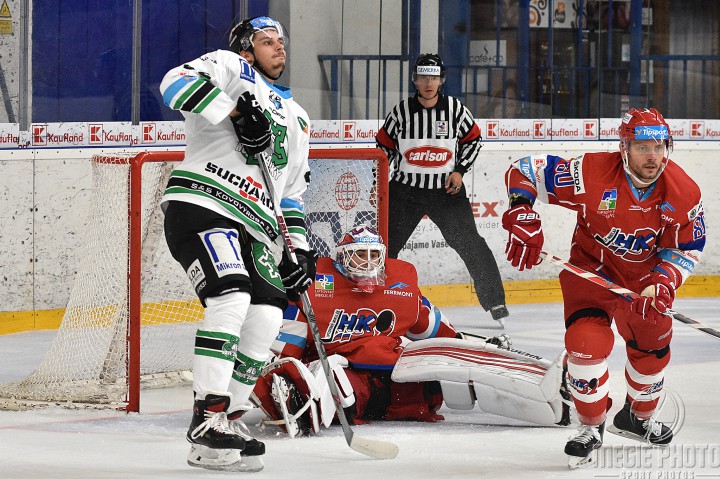 Na začiatku tretej tretiny sme hrali presilovku, tá dopadla opačne ako by sme potrebovali. Špirko s Fábrym sa v prečíslení dvoch proti jednému dokázali presadiť, keď Fábry dorazil Špirkovu strelu odrazenú od zadného mantinelu do siete a stav stretnutia už vyzeral veľmi zle. Naši diváci sa dočkali až v 48.minúte v ďalšej z presilových hier. Rapáč na dvakrát dokázal prekonať Kováča spomedzi kruhov po Uramovej prihrávke spoza brány. Naši chlapci sa pustili do naháňania súpera a nepriaznivého stavu, dokonca sme viac ako minútu skúsili aj hru bez brankára, bohužiaľ nič nepomohlo. Kontaktný a ani vyrovnávajúci gól sa nám nepodarilo streliť a doma sme tak prehrali so Zámkami o dva góly.