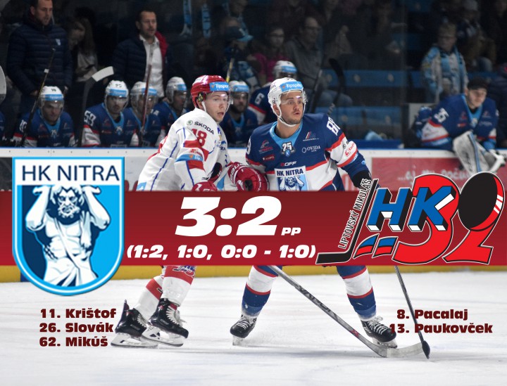 HK Nitra – MHK 32 Liptovský Mikuláš 3:2 (1:2, 1:0, 0:0 - 1:0)