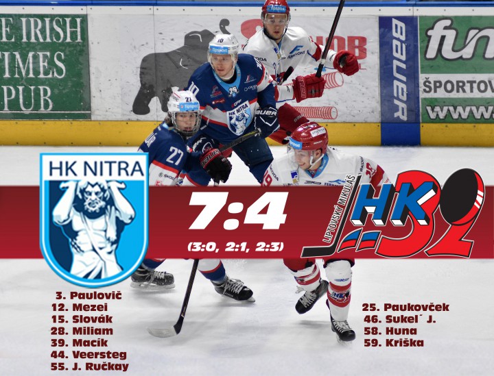 Antonín Stavjaňa, tréner HK Nitra: „Mne sa zápas hodnotí oveľa lepšie. Ani si nepamätám kedy sme naposledy dali sedem gólov. Pred súperom sme mali rešpekt, keďže naposledy v zápase na ich ľade výborne korčuľovali a rovnako zahrali výborne aj v Košiciach. Myslím si, že sebavedomie hostí nalomili tri góly v prvej tretine a to nám pomohlo zápas zvládnuť.“