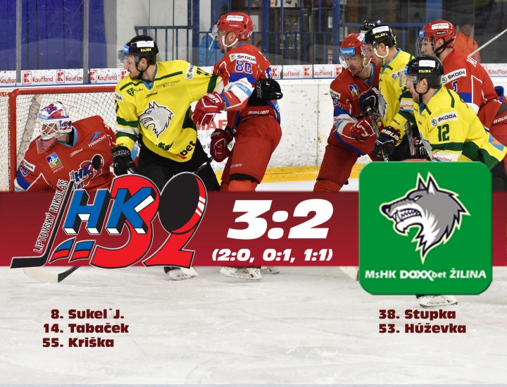 MHK 32 Liptovský Mikuláš – MsHK Žilina 3:2 (2:0, 0:1, 1:1)