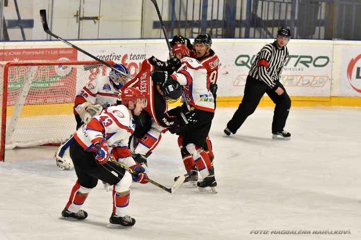 Druhá tretina ale Liptákom nepriniesla veľa radosti. Zbytočnými vylúčeniami sa dostávali pod tlak. Hrali dokonca oslabovku o dvoch hráčov. Znížiť sa podarilo Jurákovi v 37. minúte, keď využil presilovku. O pätnásť sekúnd bolo dokonca vyrovnané. Nesústredený hráči hostí dovolili skórovať Baranovi. Začínalo sa tak odznova. Liptáci trávili veľa času na trestnej lavici a tak nedokázali dostať pod tlak domácich hráčov. Spokojnosť po druhej tretine zavládla v kabíne domácich.