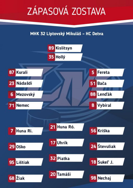 V piatok sme vyhrali nad Trenčínom, a dnes nás čaká dôležitý, a náročný súboj na ľade Detvy. Treba nám potvrdiť získané tri body z piatkového zápasu proti vicemajstrovi. Bude to náročná úloha, ale všetci veríme, že v poslednom zápase v kalendárnom roku 2018 vybojujeme víťazstvo. Marek Uram naďalej pri absencii Juraja Halaja kvôli chorobe vyplňuje pozíciu asistenta trénera.