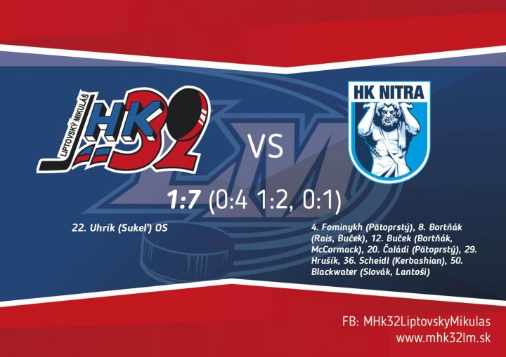 V domácom súboji proti Nitre sme nezačali vôbec ideálne a už v 8.minúte svietil dvojgólový rozdiel v náš neprospech. Najskôr sa po rýchlom protiútoku presadil Fominykh, následne presne mieril aj Bortňák. Skóre stretnutia sa následne menilo v 12. minúte. McCormackovu strelu ešte Kislitsyn vyrazil, no na dorážku Bučeka už nemal nárok. Tretí gól bol konečnou v bráne pre Kislitsyna, ktorý prenechal svoje miesto Šimkovi. Ten sa však poriadne ani neohrial a už tiež kapituloval, keď tesne pred prvou prestávkou inkasoval z hokejky Čaládiho.