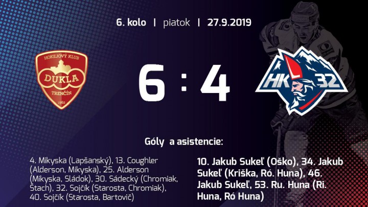 Góly: 4. Mikyska (Lapšanský), 13. Coughler (Alderson, Mikyska), 25. Alderson (Mikyska, Sládok), 30. Sádecký (Chromiak, Štach), 32. Sojčík (Starosta, Chromiak), 40. Sojčík (Starosta, Bartovič) – 10. Jakub Sukeľ (Oško), 34. Jakub Sukeľ (Kriška, Ró. Huna), 46. Jakub Sukeľ, 53. Ru. Huna (Ri. Huna, Ró Huna)