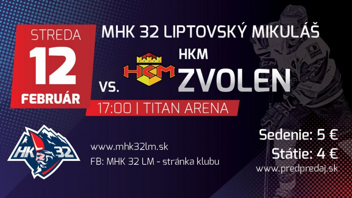 V stredu 12.2. privítame o 17:00 v „Kôlničke“ Zvolen a v piatok 14.2. rovnako o 17:00 zavítajú na Liptov hráči Detvy. V nedeľu cestujeme do Banskej Bystrice.