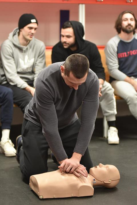 Nikdy neviete čo sa môže stať vášmu spoluhráčovi na ľade, alebo kamarátovi mimo ľadu. Naši hráči, dnes absolvovali popoludnie s nadáciou DOBRÉ SRDCE Borisa Sádeckého. Na úvod si hráči vypočuli zaujímavú prednášku o prevencií a predsezónnych športových prehliadkach pre profesionálnych športovcov. Neskôr si osobne skúšali oživovanie a prácu s defibrilátorom. Nadácií sa chceme veľmi pekne poďakovať za náučný deň a príjemnú atmosféru !