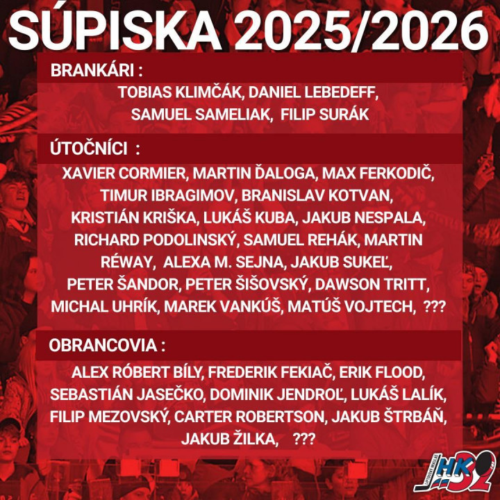 Vážení fanúšikovia, už v pondelok odštartujeme spoločnú letnú prípravu so širším kádrom hráčov. Hlavný tréner si však v zostave stále necháva otvorené dve voľné miesta – jedno pre obrancu a druhé pre útočníka. O ich obsadení rozhodnú najbližšie týždne prípravy.