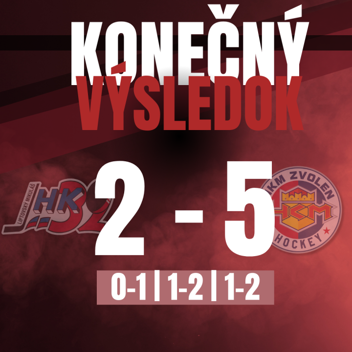 Na domácom ľade sme podľahli tímu HKM Zvolen výsledkom 2:5. Ďakujeme fanúšikom za podporu aj napriek nepriaznivému výsledku!