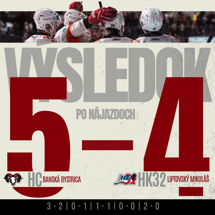 Dnešný zápas na ľade v Banskej Bystrici priniesol napínavý hokej až do samostatných nájazdov. Po vyrovnanom priebehu sme prehrali 4:5 po nájazdoch, a tak si domov odvážame 1 bod. ????