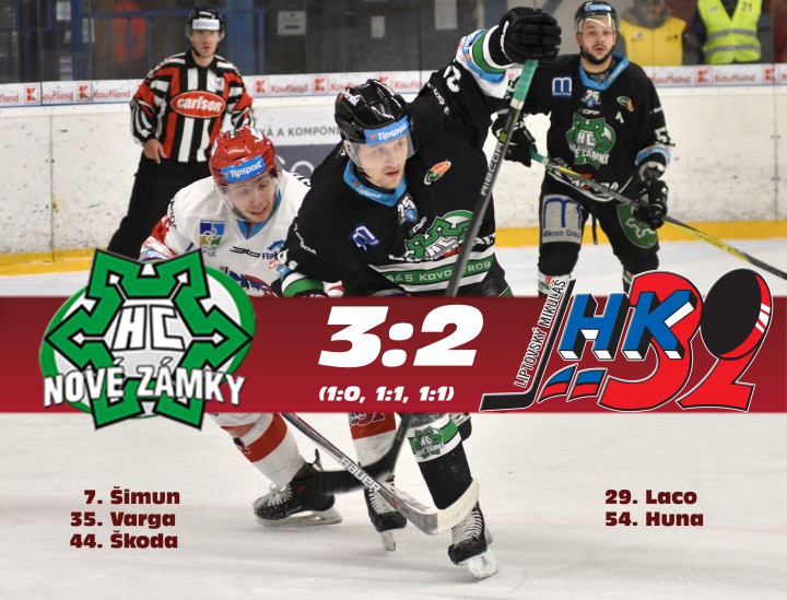 HC Nové Zámky - MHK 32 Liptovský Mikuláš 3:2 (1:0, 1:1, 1:1)