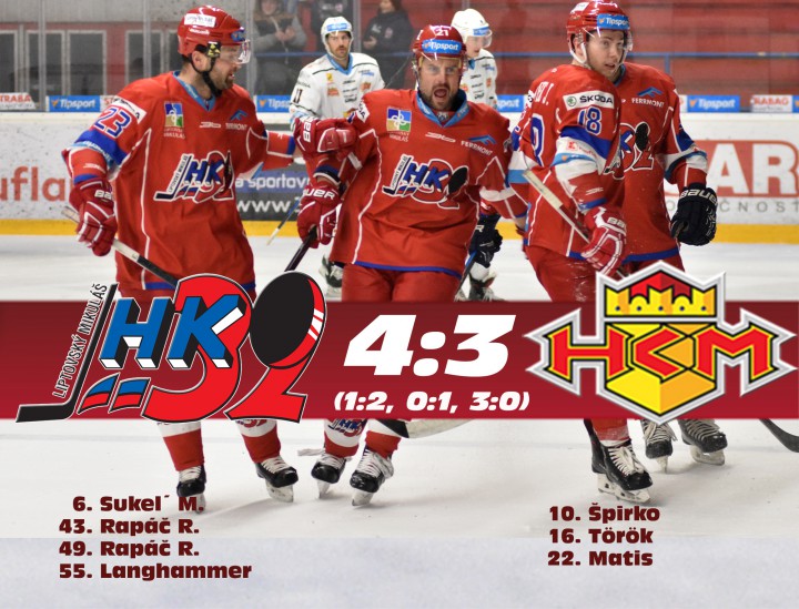 MHK 32 Liptovský Mikuláš – HKM Zvolen 4:3 (1:2, 0:1, 3:0)
