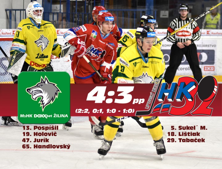 MsHK Žilina – MHK 32 Liptovský Mikuláš 4:3 (2:2, 0:1, 1:0 - 1:0)