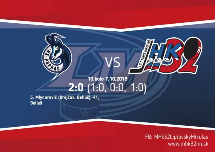 HK Poprad - MHK 32 Liptovský Mikuláš 2:0 (1:0, 0:0, 1:0)