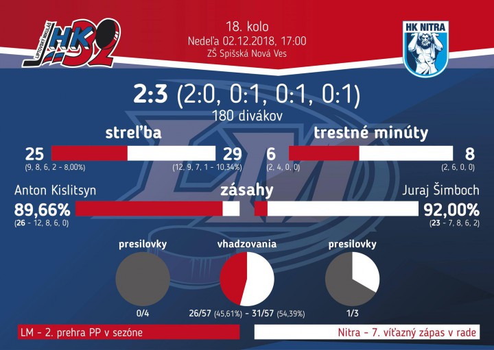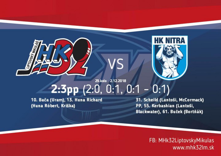 V tretej tretine sme začali lepšie. V 42.minúte sa po chybe obrany hostí dostal do samostatného úniku Tamáši, ale v zakončení zlyhal. V záverečnej desaťminútovke Nitra stupňovala tlak v snahe otočiť nepriaznivé skóre a podarilo sa jej vyrovnať v 55. minúte po bekhendovom zásahu Kerbashiana. Súboj dospel do predĺženia, v ktorom rozhodol o víťazstve Nitry po 48 sekundách Buček, keď našši nezvládli štandardnú situáciu, vhadzovanie v našej tretine.