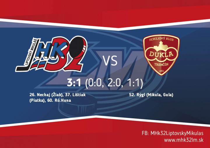Druhá tretina začala lepšie pre naše farby, keď sa v 26.minúte Nechaj natlačil po ľavej strane do pásma až pred Valenta a bekhendom prekonal trenčianskeho gólmana. Hostia potom prebrali iniciatívu a hlavne v presilovke v polovici zápasu pri vylúčení kapitána Krišku prišli krušné chvíle pre našich hráčov. V tomto nerovnovážnom stave však predviedol Kislitsyn dva či dokonca tri geniálne zákroky a udržal nás vo vedení. V 37.minúte sme sa nadýchli a zvýšili naše vedenie, keď sa Lištiak trafil priam ukážkovo. Z pravého kruhu obtrel svoju strelu o ľavú tyčku a tá zapadla za bezmocného Valenta. Treba vyzdvihnúť prácu jeho spoluhráčov z útoku, ktorý perfektne clonili pred brankárom hostí a ten zaregistroval puk po Andrejovej strele až v sieti. V tejto tretine sme ustáli tlak, ktorý prišiel po otváracom góle a na záver sme sa dokonca nadýchli na odvetu, čo sa ukázalo ako rozhodujúca pasáž tohto zápasu.